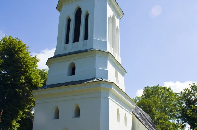 Wieża wybudowanego w 1905 r. kościoła ewangelickiego p.w. Marcina Lutra – jedyna część budowli, która zachowała się do dziś.