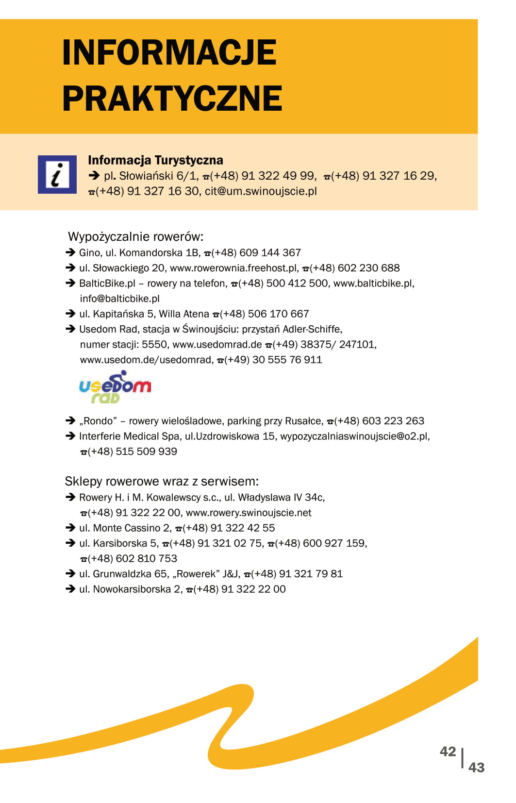Rejsy odbywają się w miesiącach: maj-wrzesień z mariny OSiR na Basenie Północnym w Świnoujściu