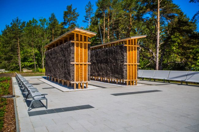 Szwadronu RAF „Dambusters”, zestrzelonych 16 kwietnia 1945 roku, w trakcie bombardowania pancernika „Lützow”, który cumował w pobliżu dzisiejszej przeprawy promowej. Pomnik zbudowany został ze szczątków samolotu Lancaster.