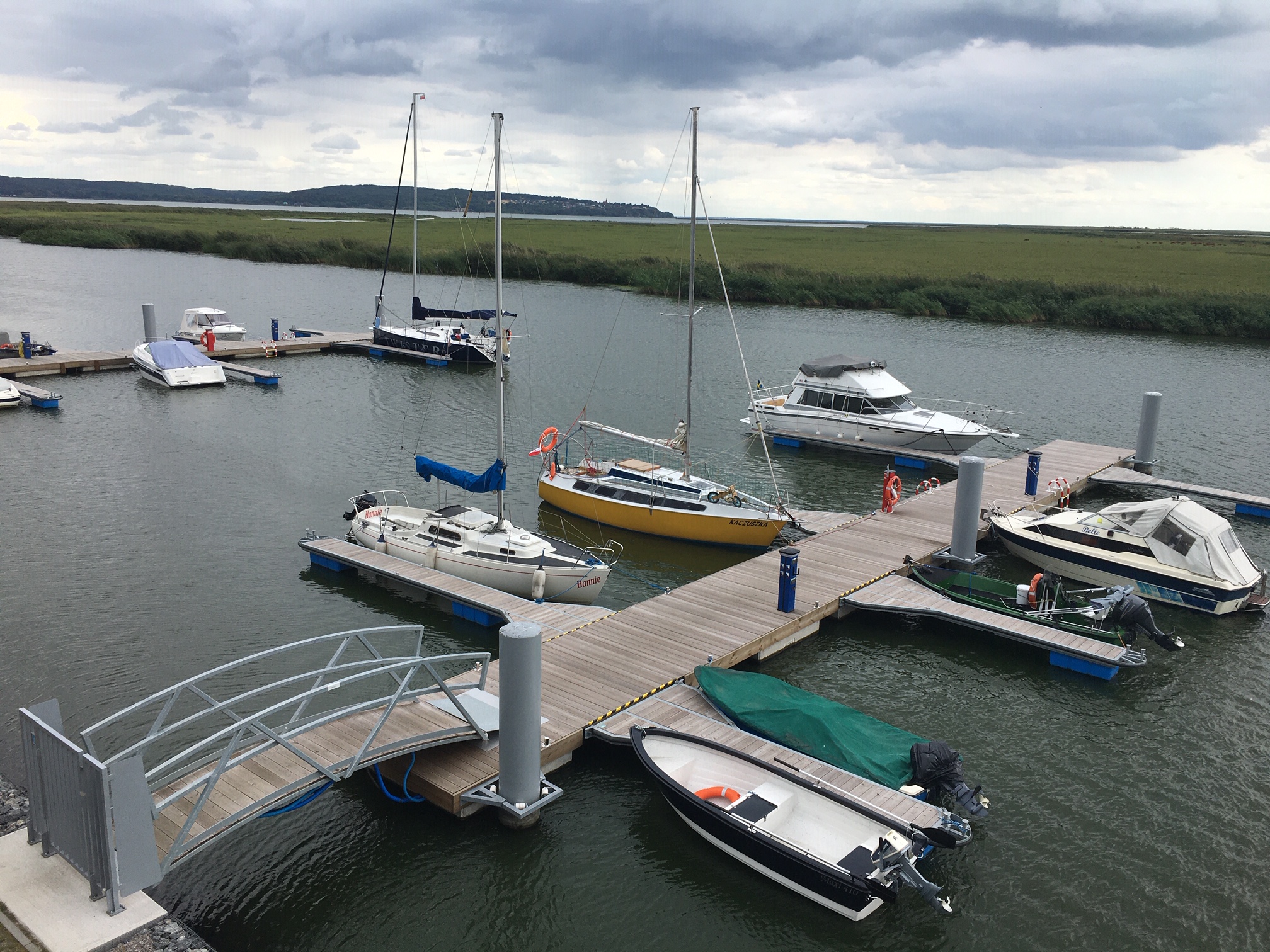 Port jachtowy położony jest na wyspie Uznam w niedalekiej odległości od centrum miasta. Sąsiedztwo portu stanowi zabytkowy Park Zdrojowy i XIX-wieczne fortyfikacje. Potwierdzeniem wysokich standardów jest rokrocznie przyznawane międzynarodowe wyróżnienie, znak jakości - „Błękitna Flaga".
