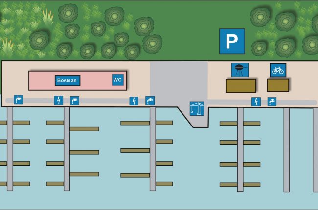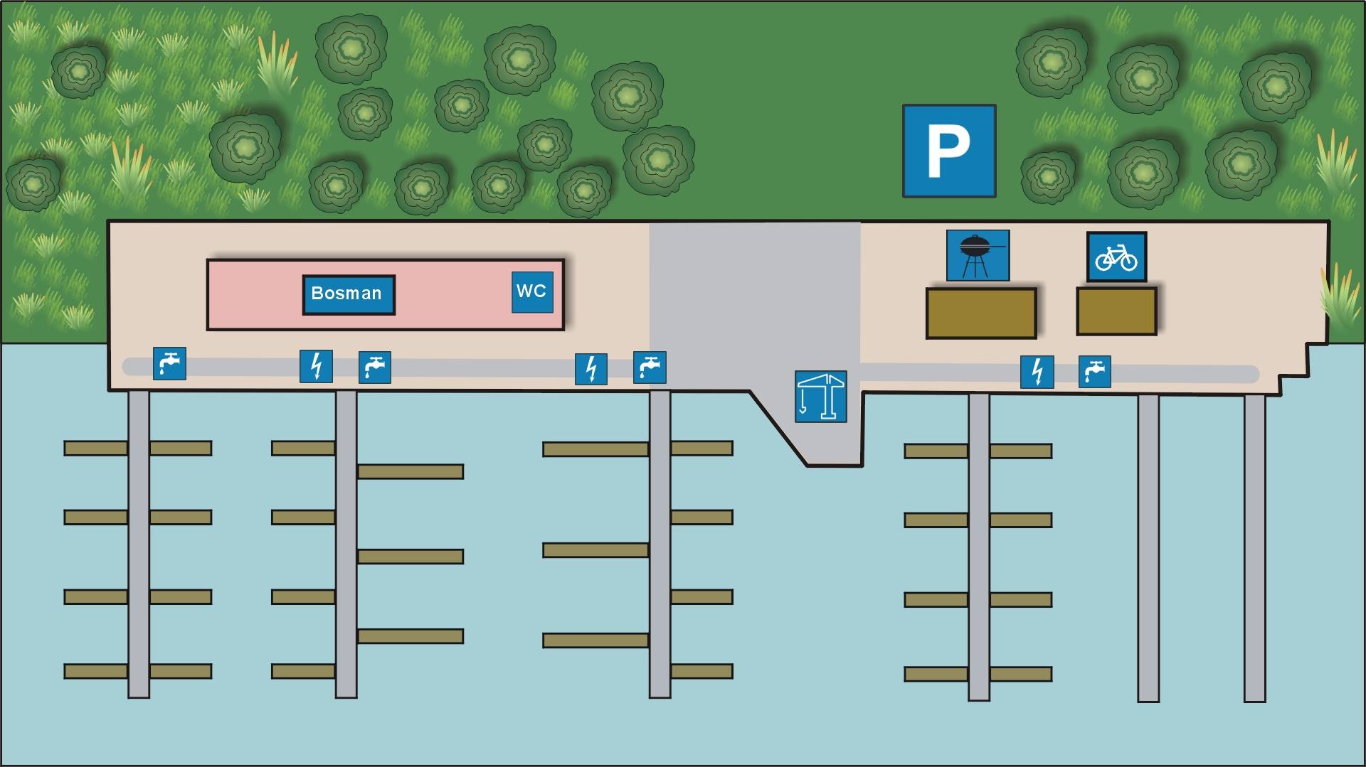 Można tam skorzystać z nowego nabrzeża oraz pomostów z dostępem do prądu. Na przyjezdnych czeka 15 metrowy slip, pirs dojściowy do pomostów pływających oraz 5 dalb pod pomosty pływające. Dla zmotoryzowanych przygotowane zostały miejsca parkingowe. Przy przystani znajdują się także toalety oraz plac zabaw. Pobyt uatrakcyjnia drewniana elewacja z modrzewia syberyjskiego.