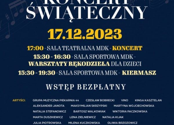 17.00 – 18.30 – II Wielki Koncert Świąteczny (wystąpią: Grupa Muzyczna Piekarnia 44, Czesław Bobrecki, Vino, Kinga Kasztelan, Aleksander Janota, Maksymilian Skrzypski, Martyna Wojciechowska, Natalia Stefanowicz, Bartosz Walkowiak, Wiktoria Paczkowska, Marta Duszkiewicz, Lena Zielniewicz, Natalia Kijak, Julia Piotrowska, Milena Kuczkowska, Oliwia Brzozowicz)