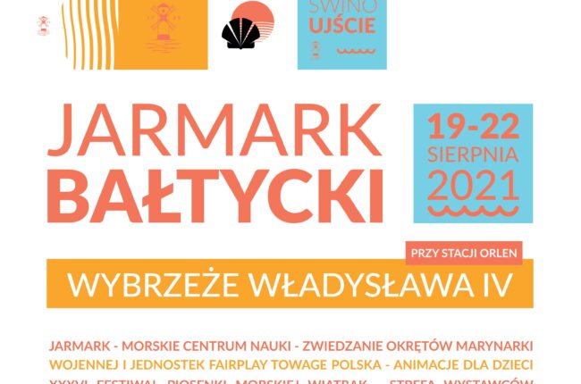 Serdecznie zapraszamy na Jarmark Bałtycki oraz XXXVI Festiwal Piosenki Morskiej „Wiatrak” Sea&Folk, które odbędą się w dniach 19 – 22.08 2021 w Świnoujściu na Wybrzeżu Władysława IV (za stacją paliw PKN Orlen), w godzinach 10:00-22:00.